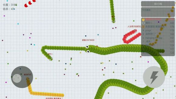 对于大蛇蛇来说,它的性命更加值钱。也可以联合你的小伙伴一起限制大蛇蛇的绕圈路线,逼迫它失误。若是可以反杀,那可以大大壮大你的长度哦。