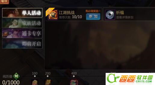 点击【活动】,进入每日必做活动页面,完成每日必做活动。可通过此页面下方的阅历值进度条,看到当日阅历值的获取情况。