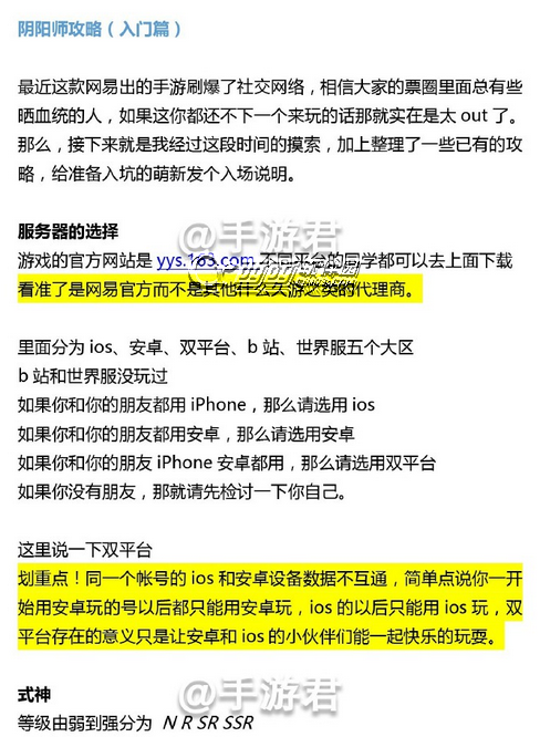 阴阳师手游是最近网易开发的一款新网游,当然很多玩家都掉入了阴阳师这个坑里,画风简直不能再美了,小编整天看到有人在朋友圈里面晒式神,因为ssr式神实在太稀少了,下面小编就来给大家介绍一下阴阳师手游新手入门攻略以及最全式神排名及御魂掉落一览,希望能帮到各位玩家!