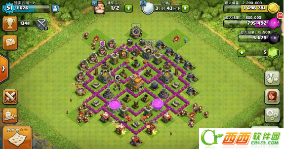 这个阵型能很好的保护黑水和大本,不过这个阵的弱点就是圣水有点靠外如果是高本的兵力的话,还是用点危险的,当然低本的阵型都不是那么完美的,有所得就有所失。