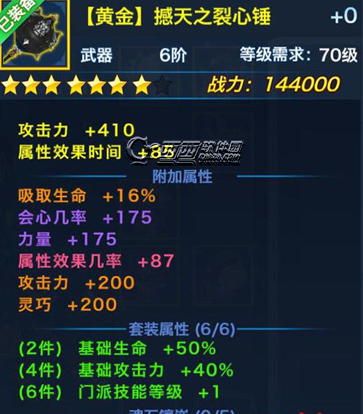 武器是黄金套装中,另一件可以产生外观变化的装备,裂心锤虽然名为黄金套装,但是锤身却仅有隐约可见的金色装饰,主色调为黑色,却显得比金色更具攻击力。