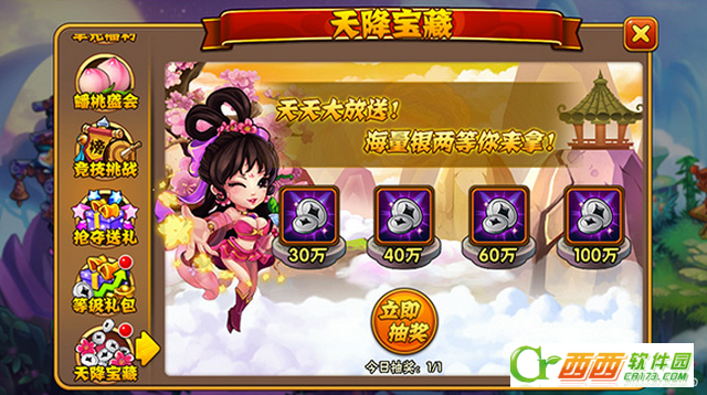 4、活动中的【天降宝藏】,可以一键获取大量银两。