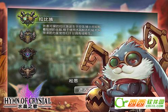 种族简析:拉比族——水晶之歌游戏中的萌值担当,外表可爱软萌,拉比族诞生于空岛,虽然身材矮小但却有着聪明精干的头脑,擅长使用水晶作为动力制造机械,不要被他们萌萌的外表所迷惑,拉比族制造的机械所带来的力量使得他们十分具有侵略性,甚至是嗜血。拉比族的载具和佣兵几乎为清一色的机械,即使是拉比人亲自上战场也必然会用机械把自己武装到牙齿,拉比族的载具和武器极具攻击性,与拉比人的外表形成了强烈的反差。