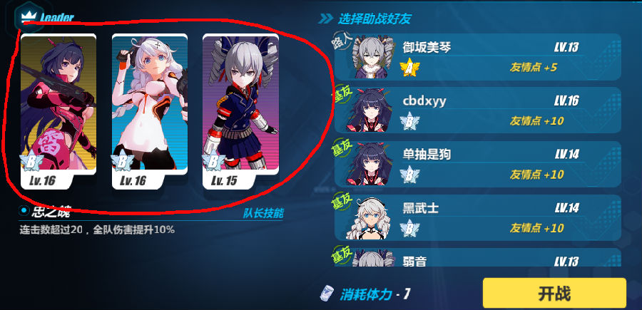 其实换队长的方法很简单,只是因为很多玩家可能不熟悉,进关卡之前的准备开战时可以调整出场三个角色的顺序,处在第一位的就是队长,同时也是显示在自己资料里的角色。具体方法如下: