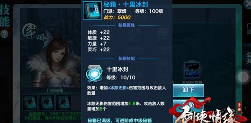 秘籍效果:增加冰踪无影范围增加1.5米,攻击敌人数量增加5个。