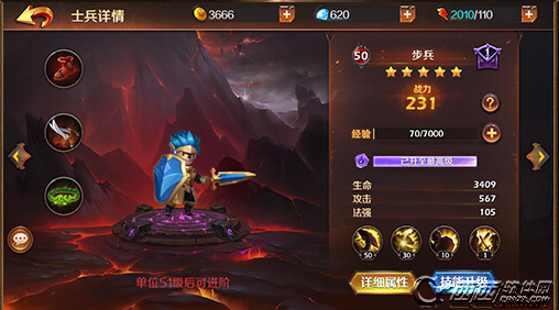 而士兵的战力提升上,同样要注意对其碎片的收集用以升星提升战力,对士兵等级的提升也同样重要,通过提升等级让士兵可以装备更优秀的装备并进阶提升自身的战力。另外对技能等级的提升也同样重要。