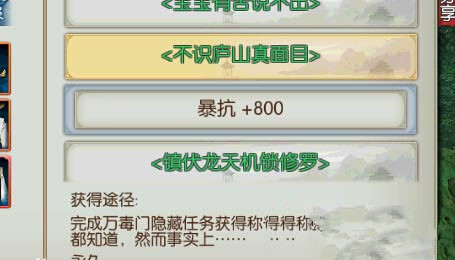 然后我们把法宝幻化成伏龙鼎,之后就飞到蛮荒地图里面去,找到大长老,坐标差不多是63.79那里翻几下就可以触发任务了,和十大青年那个翻的是一样的,我们在完成之后,就可以获得称号【不识庐山真面目 暴抗+800】