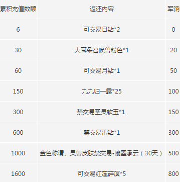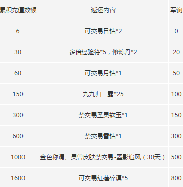注:之后每充值1000元,返还1000军饷、1个天下号令