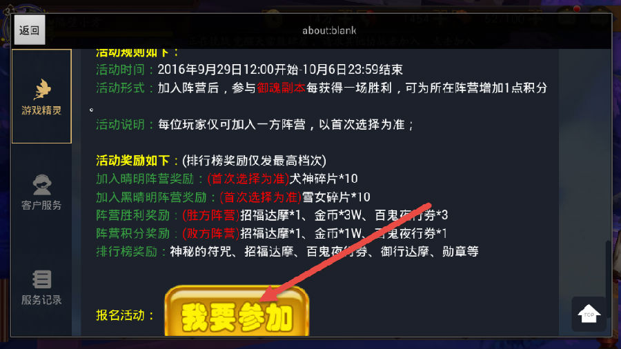 玩家走到灯笼那里,点击网易精灵,然后点击黑白晴明阵营战。点击上方图片的我要参加就可以参与活动,然后选择自己想要加入的阵营就可以了。