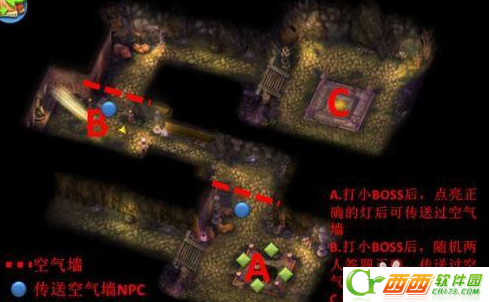 在A区域击败守护妖怪后,每个玩家获得一把密码箱钥匙,地上刷出4个密码箱,刷出蓝点处的传送NPC(形象与A区域守护妖怪相同)