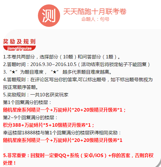 2.答题时间:2016.9.30~2016.10.5(活动结束后将锁定帖子不能回复)