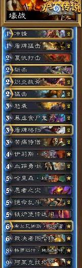 斩杀:新版斩杀虽然削弱了(费用增加了1费),但依旧能用,只是不好用,费用的增加使得战士前期在对战快攻时更加难受,但在对战中慢速的控制卡组时,2费和1费的差别其实并不太大,所以还是要带上1张。