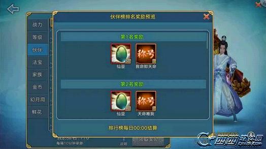 伙伴排行:伙伴战斗力排行的越高能够获得的仙豆就越多。