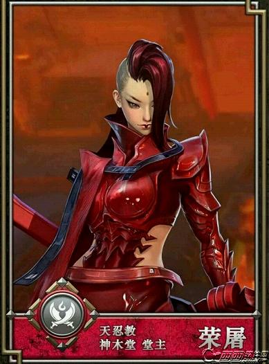 荣屠乃是天忍教神木堂堂主,是天忍教数一数二的武功好手,传奇的经历使她兼得大宋武学与天忍刀法的精髓。她资质绝顶,二十余岁便得完颜襄赏识交予神木堂,并使之成为天忍中最为显赫的一堂。