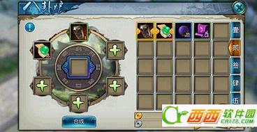 界面左边是道具放置与合成结果,于外圈“+”道具空位中放置道具,点击“合成”按钮即可于八卦中心获得相应道具。