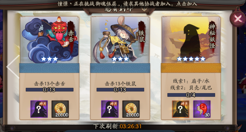 阴阳师椒图在悬赏封印中线索是扇子,水,贝壳,尾巴,