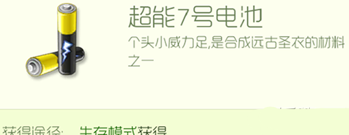 超能7号电池是一款基础的圣衣升级材料 。算是最普通的一样材料之一了。和玫瑰精露啊精灵泉水一样,掉率是最高的。因此只要你生存胜利,基本上都有概率获得。胜利5局,4局或者5局会掉落的那一种。因此最有效的方法就是去玩生存模式。别看掉率高,这款材料也是非常有用的,每个圣衣都需要它,很多高级材料也都需要它哦。
