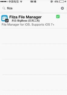 1、直接打开cydia搜索filza下载安装,这是重点!!注意其它软件不行,只能用filza。