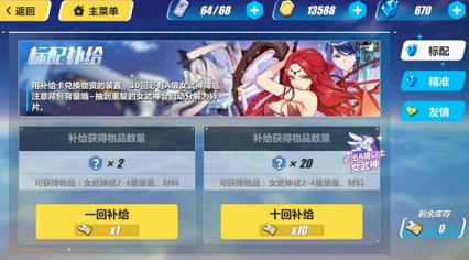 友情:友情补给的话,也是什么都会有的,不过友情补给消耗的不是钻石,而是友情点,友情点的赚取就是签到以及你的好友用你助战的话,就会在自动给你友情点啦。
