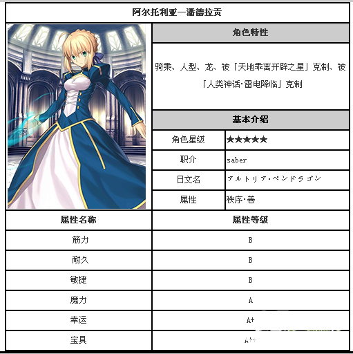 FGO国服阿尔托莉雅属性详解