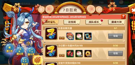 活动一:七日狂欢,齐集龙珠获珍宝。玩家在开服七日中,每日都有相对应的限时任务和其他的日常任务,完成任务后即可领取丰厚的游戏奖励。