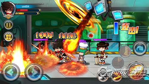 在操作方面《绝对领域极战纪》采用了横版闯关的游戏模式,不过游戏中并没有虚拟摇杆的设置,我们的角色只需要在一个横轴上进行左右移动以及跳跃。虽说战斗的平面相较于同类手游更为简单,但是游戏本身的爽快程度却是依旧,一个普通攻击按键以及四个技能按键的搭配足以让玩家打出一套致命的连招。并且由于所有敌人都在一个平面上,通过跳跃平移等操作,将敌人的聚集成一堆,再用大范围的技能一次清空,那快感只有亲自体验一番才能够明白。