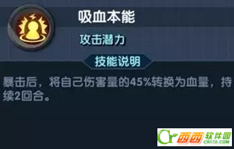 第四条子路的终点为吸血本能,效果为暴击后,将自己的伤害量的45%转换为血量,持续2回合。该潜力在宠物打出暴击之后立即触发,因此非常适合暴击率高的宠物,凭借该潜力宠物可以获得恐怖的回复能力。