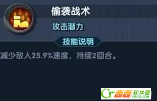 第三条子路的终点为偷袭战术,效果为减少敌人25.9%速度,持续2回合。该天赋提供的减速效果特别强,可以轻松达到速度压制的效果。但是该技能依旧采用登场之后随机触发,因此性价比将大打折扣,不能起到稳定的效果。