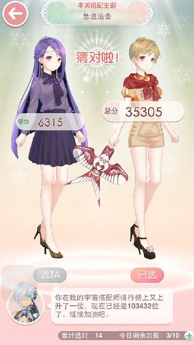 本主题的主要属性为活泼、可爱、清纯,在选择的时候主要通过红皮鞋(活泼)和手持物糖果饰品(可爱)进行判断;另外从下方的图片中可以看到,华丽宽大的古代连衣裙明显与主题简单属性的简单相违背,故此选择第一个搭配。