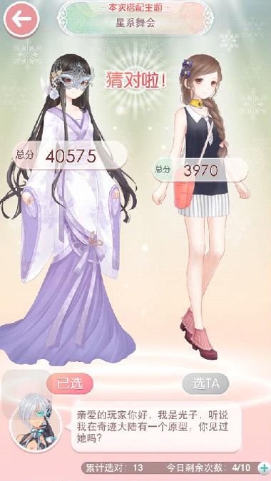 本主题的主要属性为华丽、优雅、成熟,与急速追击主题刚好相反,本主题穿戴的越华丽越好,参加舞会的话,华丽的连衣裙是必不可少的,因此如果出现上下装的搭配一定不能选;另外一个重要的选择技巧是,戴了怪盗面具、墨镜和面纱的搭配是正确的搭配。
