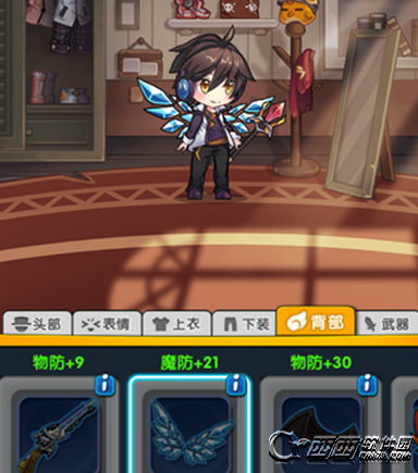 时装分为头部、表情、上衣、下装、背部和武器六个部位,每个部位都拥有好几件时装供大家选择。其中有些部位装备不能提供属性,而武器和背部这两个部位却可以为玩家提升属性。