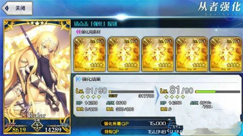 升级需要大量的QP以及棋子等道具,大家可以在迦勒底之门中随机开放的宝物库(大量QP,40AP一次100万QP左右)及职阶修炼场(掉落各职介突破用的金,银棋子等)副本中获得。这些副本同样适用于永动刷法。