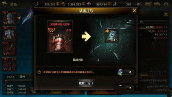 在做过超越或者强化过特有技能的装备上可以通过提取获得强化券碎片,只有一次以上超越或强化特有技能的永恒品质装备可以进行提取。根据材料装备的超越次数,可以获得武器超越强化券碎片或防具超越强化券碎片;根据材料装备的特有技能强化次数,可以获得特有技能强化券碎片。