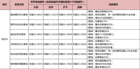 一般来说每个角色需要配齐两套装备,一套用于PVE,一套用于PVP,不同的战斗模式,携带的装备套装也是不一样的;而且可以从上表中看到,不同套装的属性加成是不一样的,从成本的角度考虑,PVE的时候,小编推荐使用戴安娜的月光套装,有不错的暴击伤害加成以及显著的防御力加成!