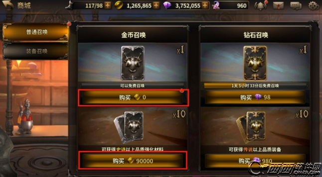 1)在商城中进行金币召唤,可以获得大量宝石,装备等;