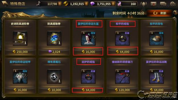 2)前期在特殊商店中购买套装装备(优先考虑同套装的防具以及饰品),如下所示:
