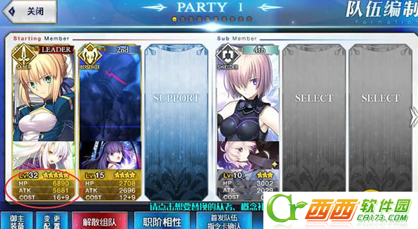 在队伍编制界面,玩家可以设置自己队伍的构成,包括最多5名己方从者+1名好友援助从者的队伍。