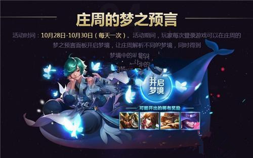 10月28日开始,玩家第一次登陆游戏都可以在“庄周的梦之预言”活动面板开启梦境,让庄周解析不同的梦境,然后玩家就会获得梦境中的奖励了。至于怎么开启想要的梦境,这个暂时没有技巧,应该都是随机的,最好的梦境可以获得永久英雄哦。