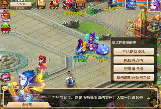 活动期间,等级达到40级的玩家可以在"捣蛋鬼"(长安城152,83)处参加抓住调皮精玩法。