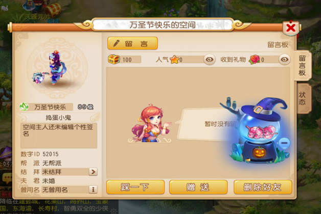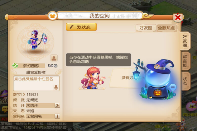 每在任务中获得一颗糖果,个人空间的糖罐中都会自动加入一颗神气糖。摇动他人的空间糖罐可以获得神气糖,食用神气糖可以变成可爱萌宠哦!如果自己的空间糖罐被摇动了十次,还可以获得一个可爱南瓜灯。