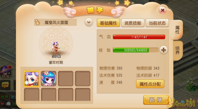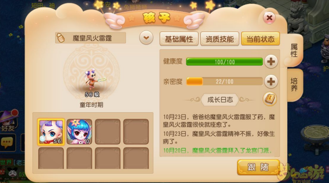 梦幻西游手游孩子亲密度和孩子属性关系一览: