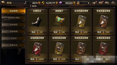 1)挑战徽章:在这里可以购买到冒险点 ,神秘盒子以及各种高级的武器召唤券,货真价实!
