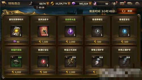 如果限时商城里面的道具并不是您想买的,您可以通过刷新按钮刷新商店的道具,每次刷新需要消耗一定量的钻石;