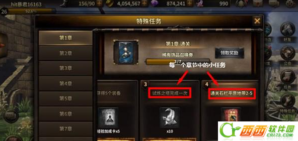 每一章的特殊任务由七个小任务组成,可以在“特殊任务”界面查看当前特殊任务的内容;