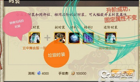 第三时装进阶:时装进阶所需材料为绫罗玉丝和仙霓云绣初级,这两种材料在游戏63级霓裳副本和商城获取。收集到一定数量可以进行时装进阶,时装进阶固定属性不会发生变化,随机属性会有变化。