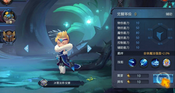 阿娜最突出的就是魔伤能力达到了80,同时大招暴风雪还有冰冻控制效果。