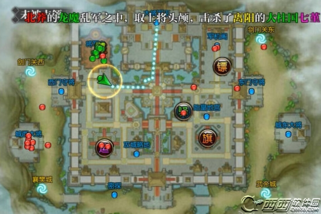 如果是从王城西进入,只需要召集大军,进攻王城城西大将(大将就在地图左边,很好找的哦),城西大将被攻克以后,接下来剑指西门守将,攻克以后,就可以进攻军机阁了。(嘘,我悄悄的分享一个小技巧,军机阁和西门守将距离实在太远了,跑到马儿都累死,何况千万大军,这样只需要有一个可以使用禁卫军令的国家官员,在西门守将快被攻下时先跑去军机阁,然后拉禁卫军令,就可以有先遣军啦)同样的道理,要是从王城东进入的话,就需要首先攻克城东大将,然后东门守将,接下来再是将军台。