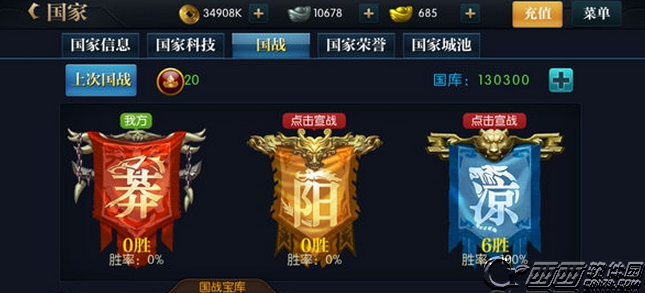 国家官员可以在每晚9点到次日18点进行敌对国宣战,宣战国和应战国之外,剩下的一个国家,可以选择帮助宣战国或者应战国(比如北莽宣战北凉,离阳可以选择帮助北莽进攻北凉或者选择帮助北凉防守北莽)