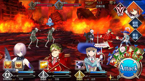 主要思路是秒前五个加一发宝具干死后三个以及点屏幕的次数尽量少,防精污,还有最常见的支援位。