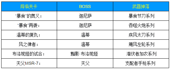 降临关卡武器掉落: